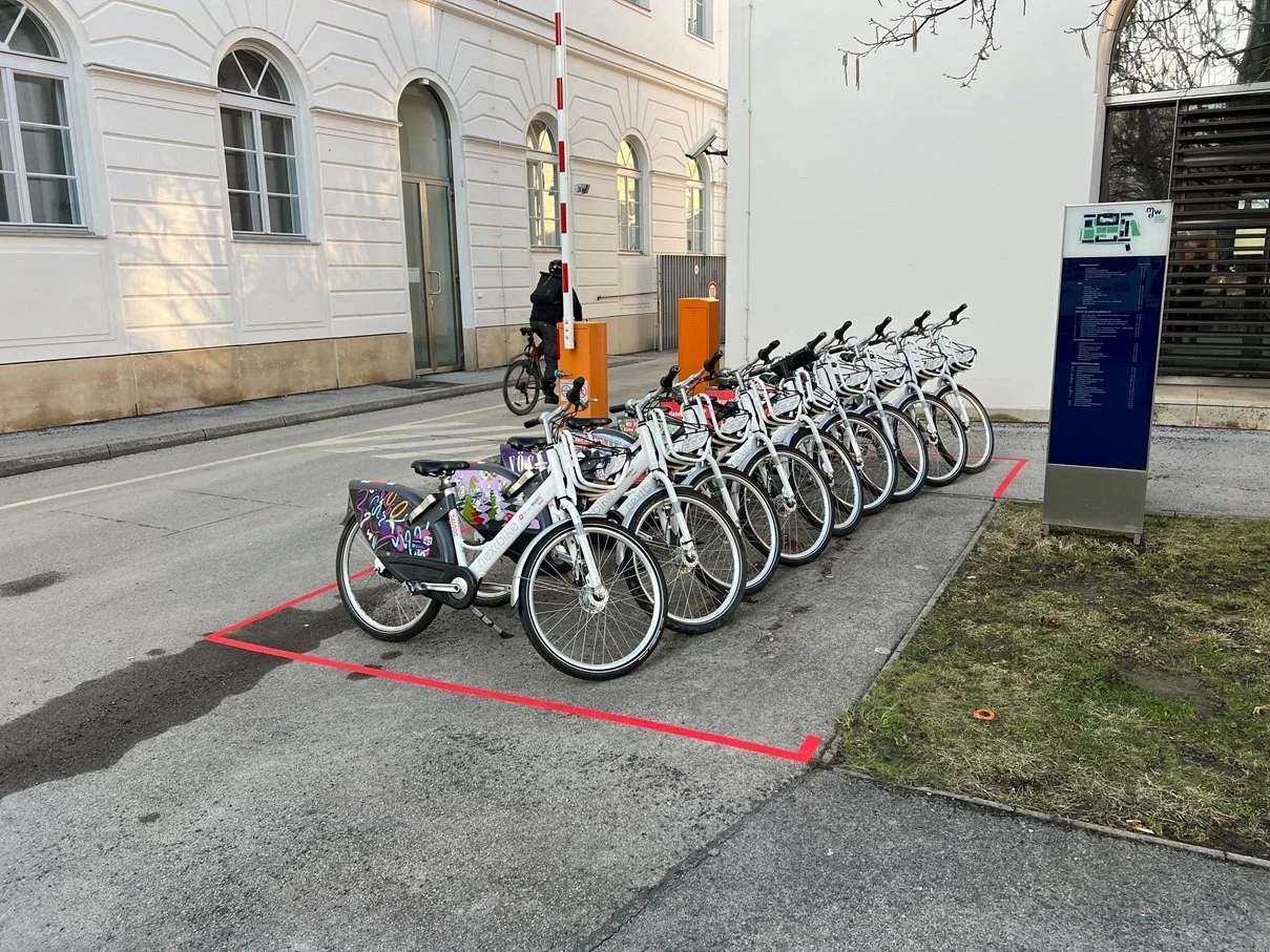 Seit 01.03.2026 könnt ihr am Campus (bei der Schranke am Gebäude E) an der neuen Pop-Up Station ein WienMobil Bike ausleihen und abstellen.